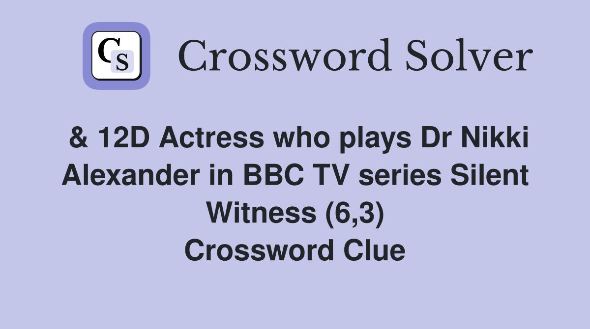 12D Actress who plays Dr Nikki Alexander in BBC TV series Silent