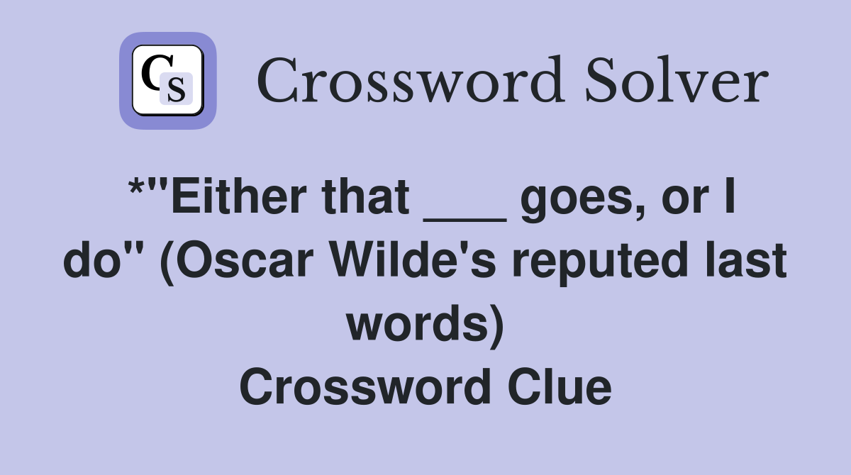 * quot Either that goes or I do quot (Oscar Wilde #39 s reputed last words