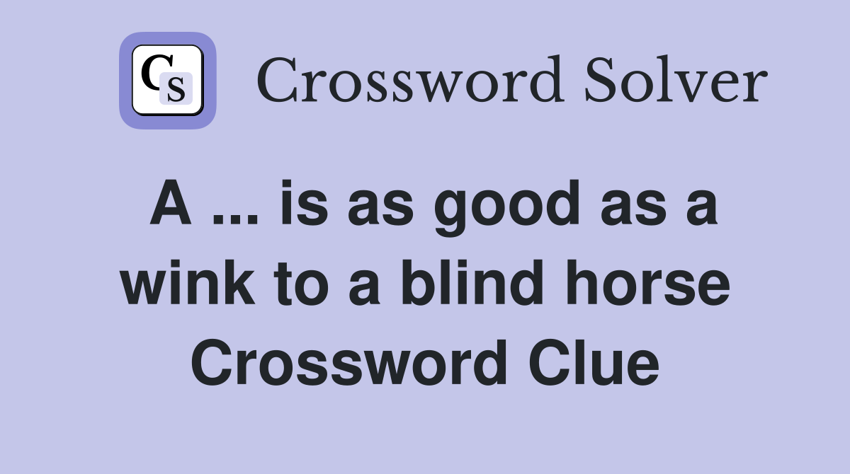 A is as good as a wink to a blind horse Crossword Clue Answers