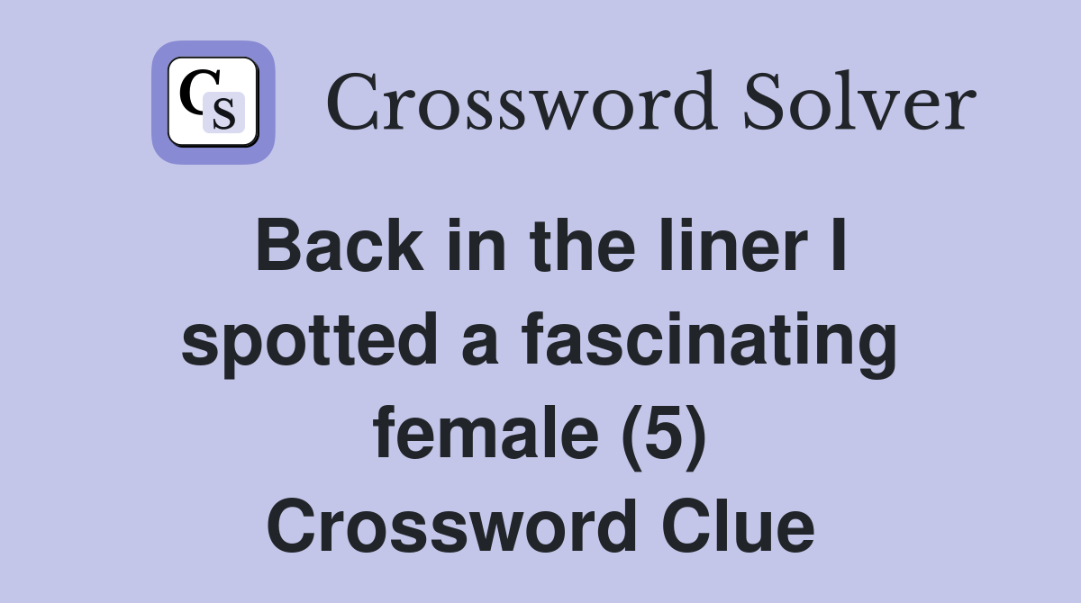 Back in the liner I spotted a fascinating female (5) Crossword Clue