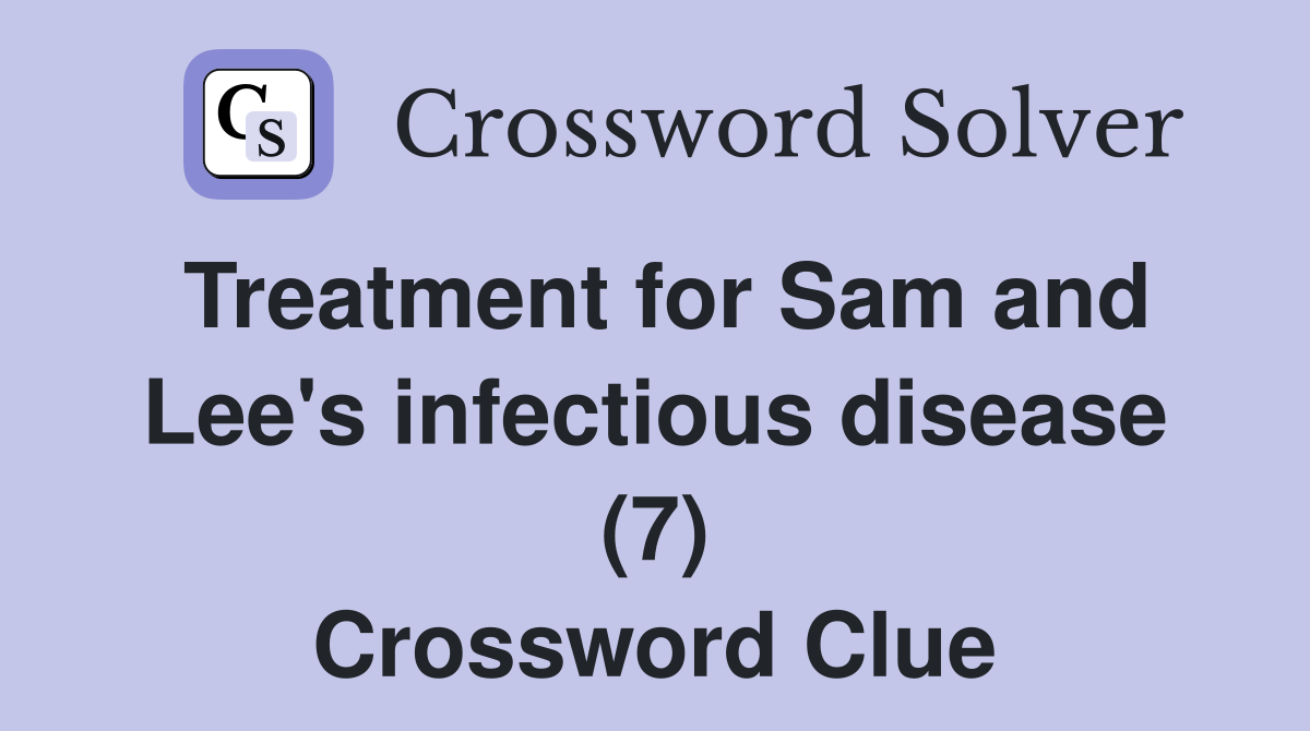 Treatment for Sam and Lee #39 s infectious disease (7) Crossword Clue