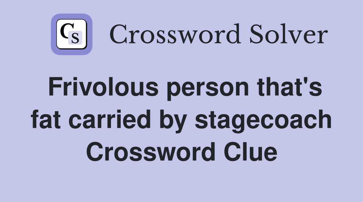 Frivolous person that #39 s fat carried by stagecoach Crossword Clue