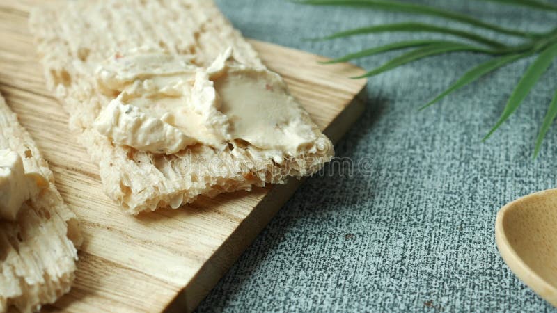 cheese cream spread crackers on table 22169547 Stock Video at Vecteezy