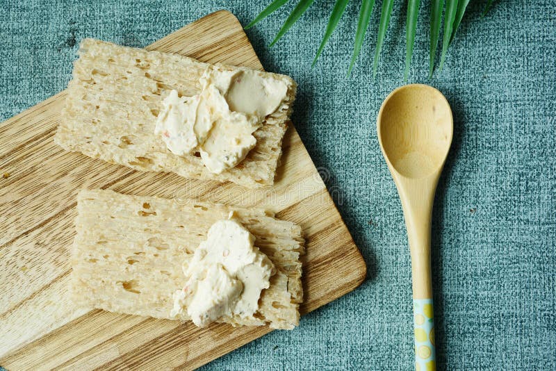 Cheese Cream Spread Crackers on Table Stock Image Image of cake