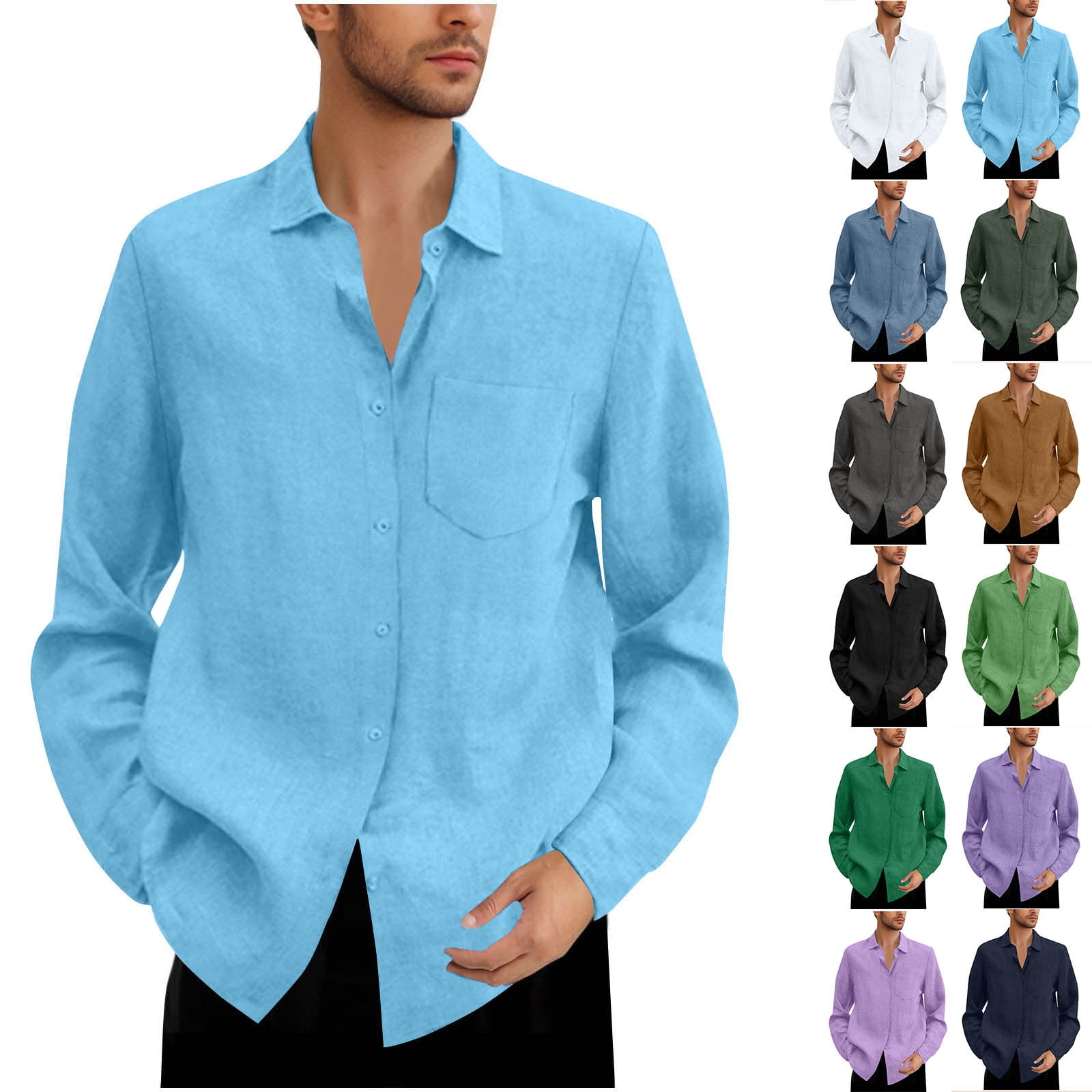 Eryao Men #39 s Linen Shirts Casual Button Down Long Sleeve Shirt Solid