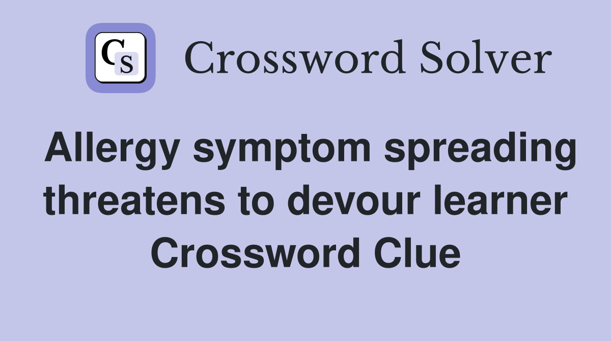 Allergy symptom spreading threatens to devour learner Crossword Clue