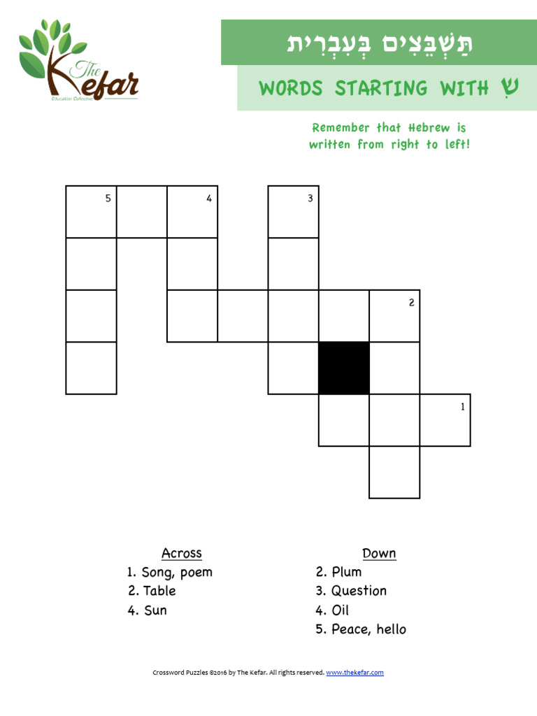 Hebrew Crossword Puzzle • Beeloo Printable Crafts and Activities for Kids
