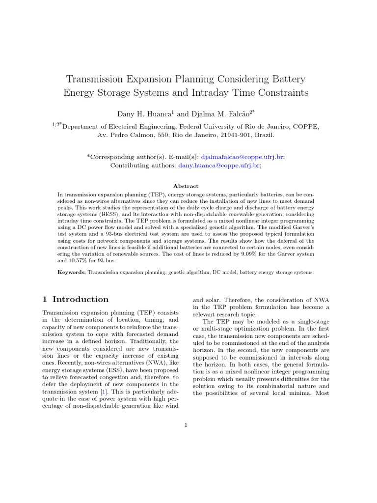 Transmission Expansion Planning Springer Nature LaTeX Template