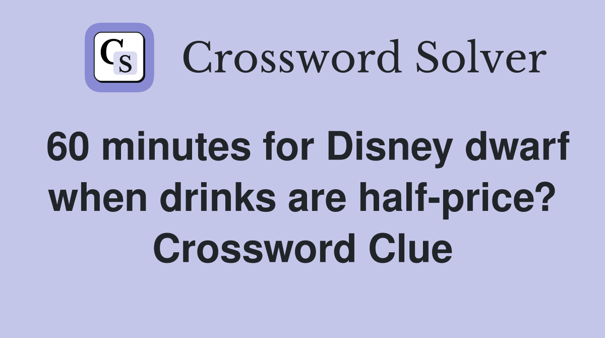 60 minutes for Disney dwarf when drinks are half price? Crossword