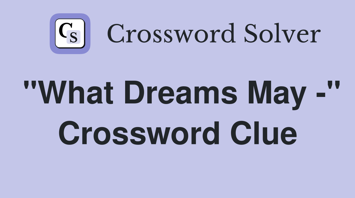 quot What Dreams May quot Crossword Clue Answers Crossword Solver