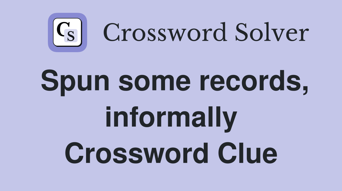 Spun some records informally Crossword Clue Answers Crossword Solver