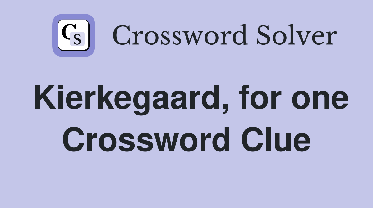 Kierkegaard for one Crossword Clue Answers Crossword Solver