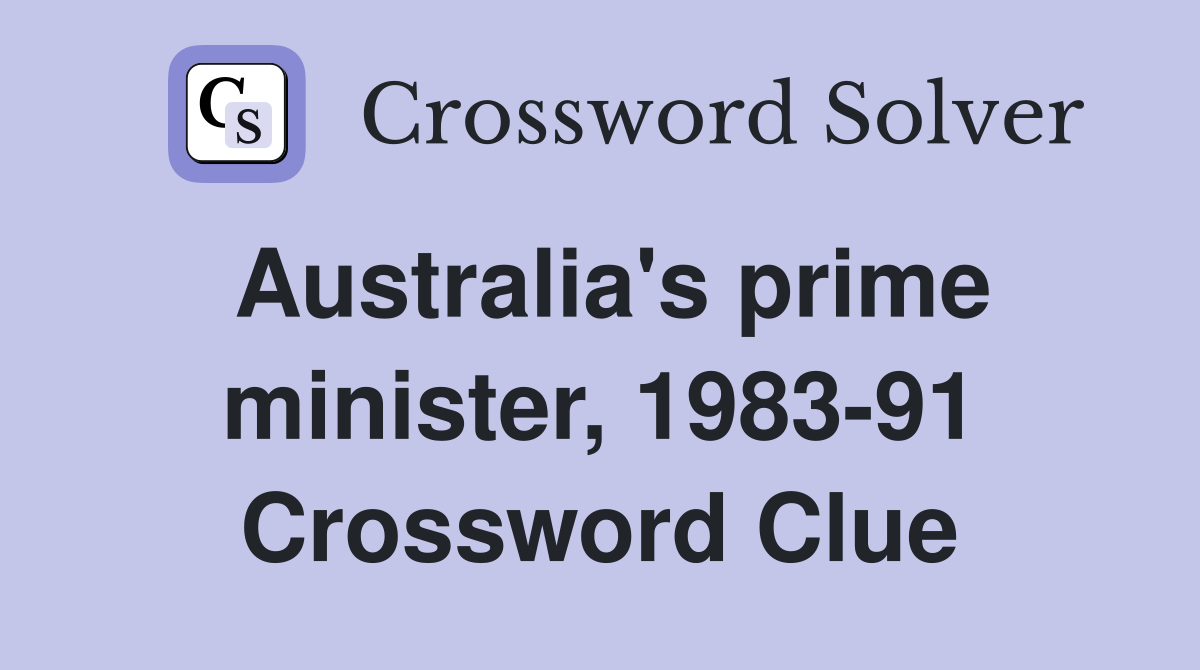 Australia #39 s prime minister 1983 91 Crossword Clue Answers