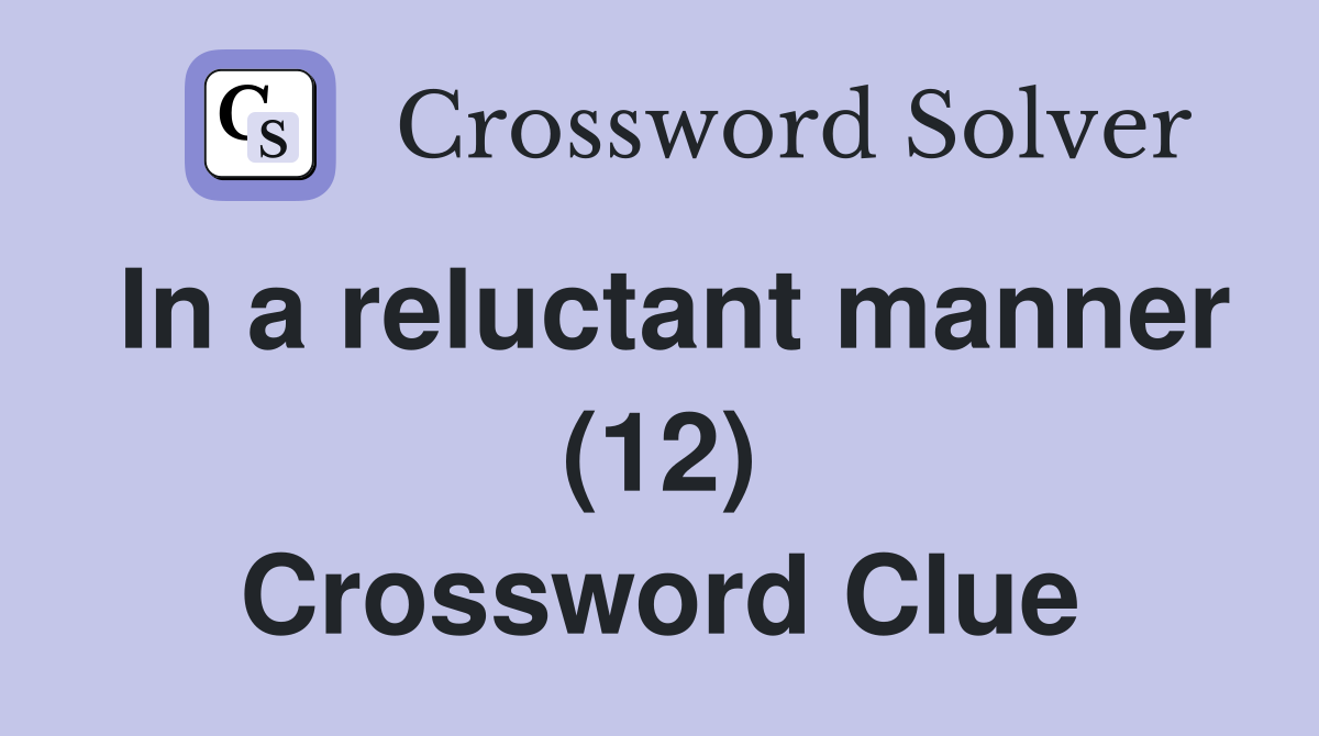 In a reluctant manner (12) Crossword Clue Answers Crossword Solver