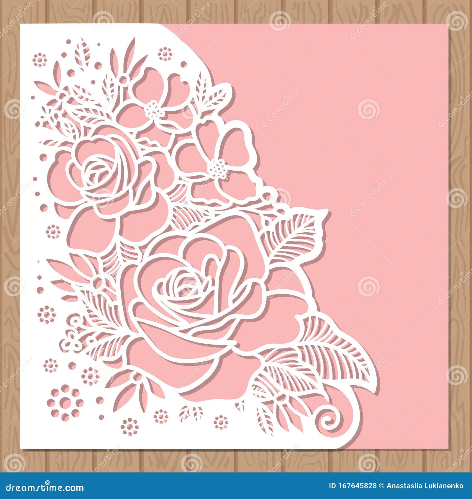 Template for Laser Cutting Square Envelope with Roses Vector Stock