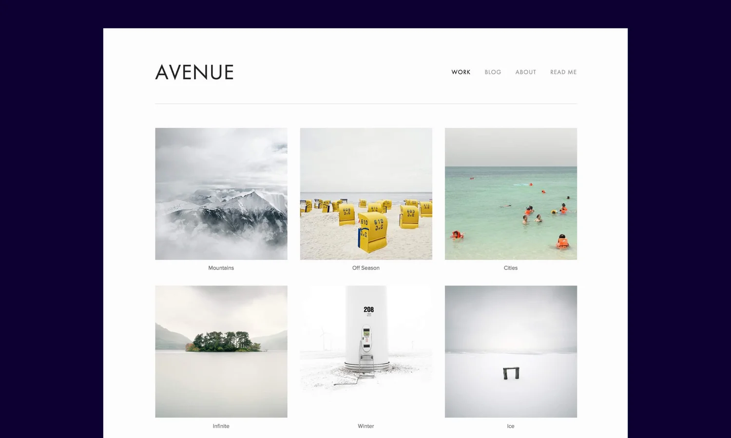 The Avenue template from Squarespace Things I like: Has a grid index