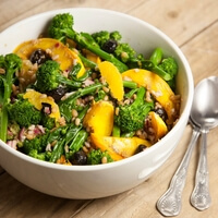 Purple sprouting broccoli squash and spelt salad recipe / Riverford
