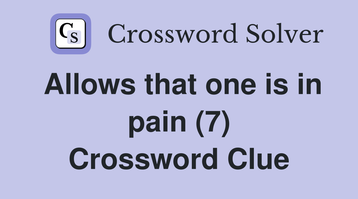 Allows that one is in pain (7) Crossword Clue Answers Crossword Solver