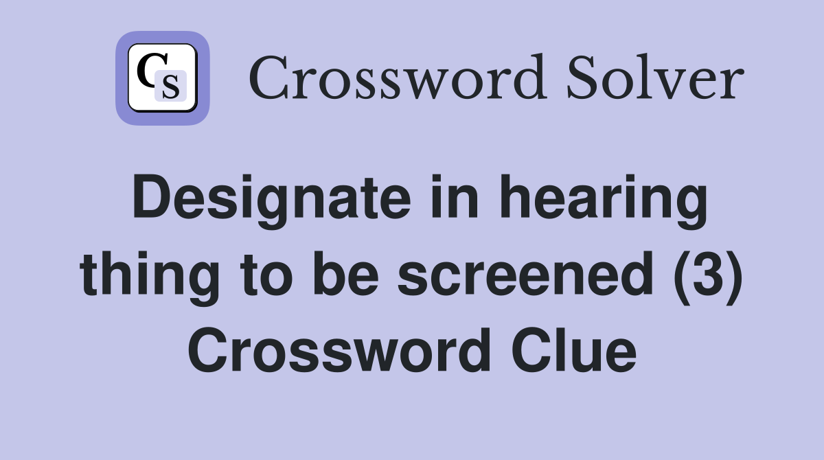 Designate in hearing thing to be screened (3) Crossword Clue Answers