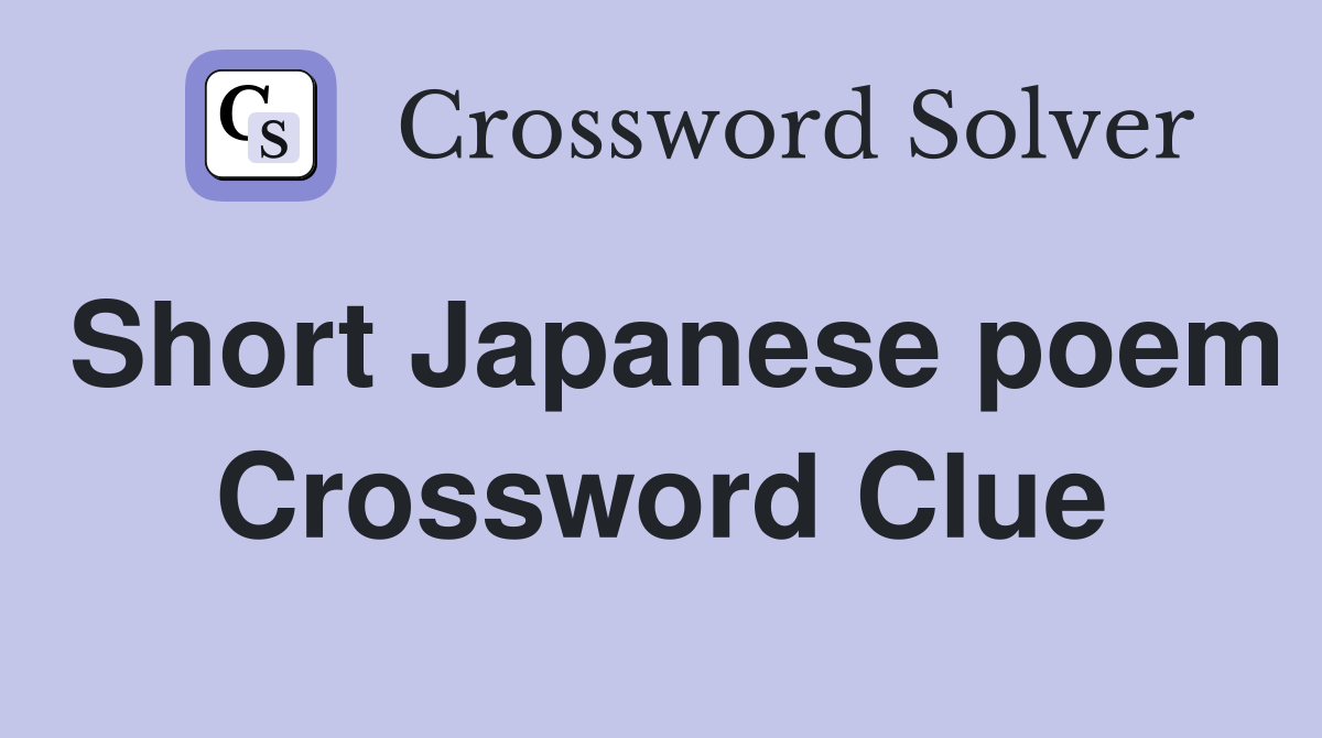 Short Japanese poem Crossword Clue Answers Crossword Solver
