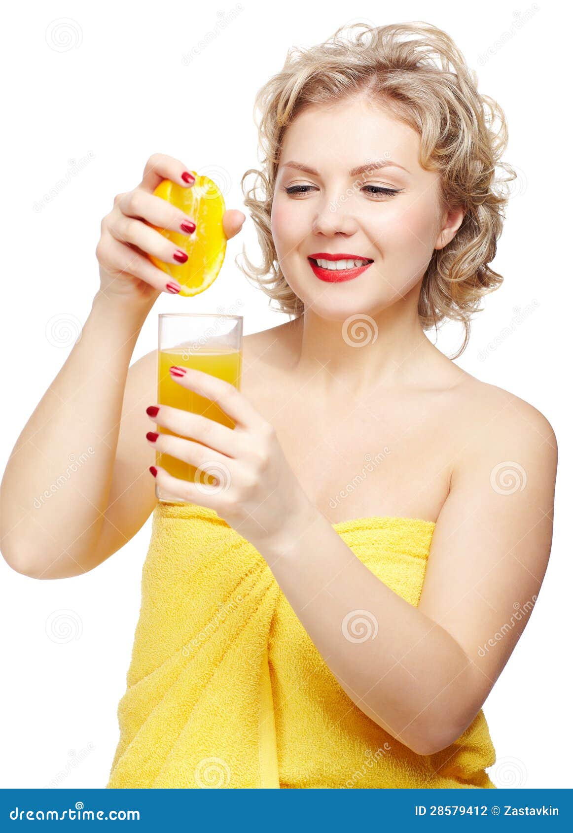 Woman squeezing out orange stock photo Image of female 28579412