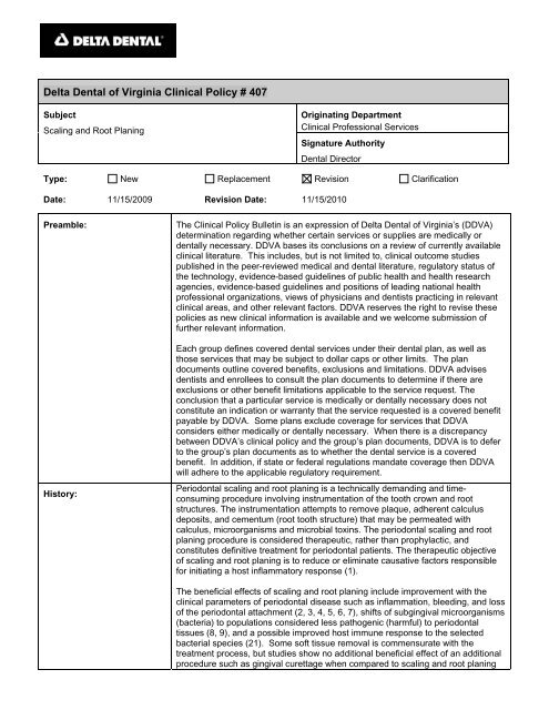 407 Scaling and Root Planing Delta Dental of Virginia