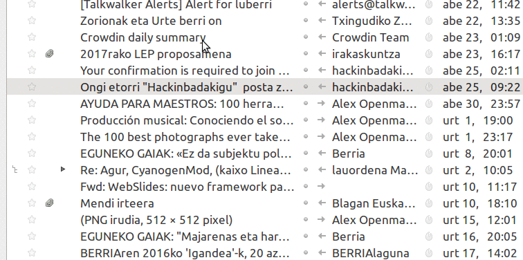 Luberri: Thunderbird mezuak kolorez markatu