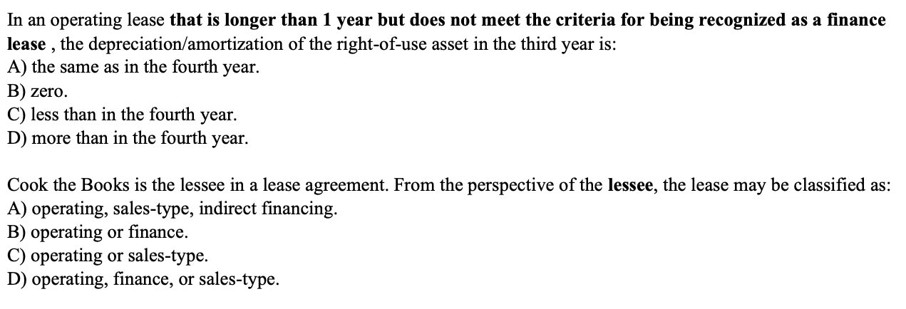 Solved In an operating lease that is longer than 1 year but Chegg com
