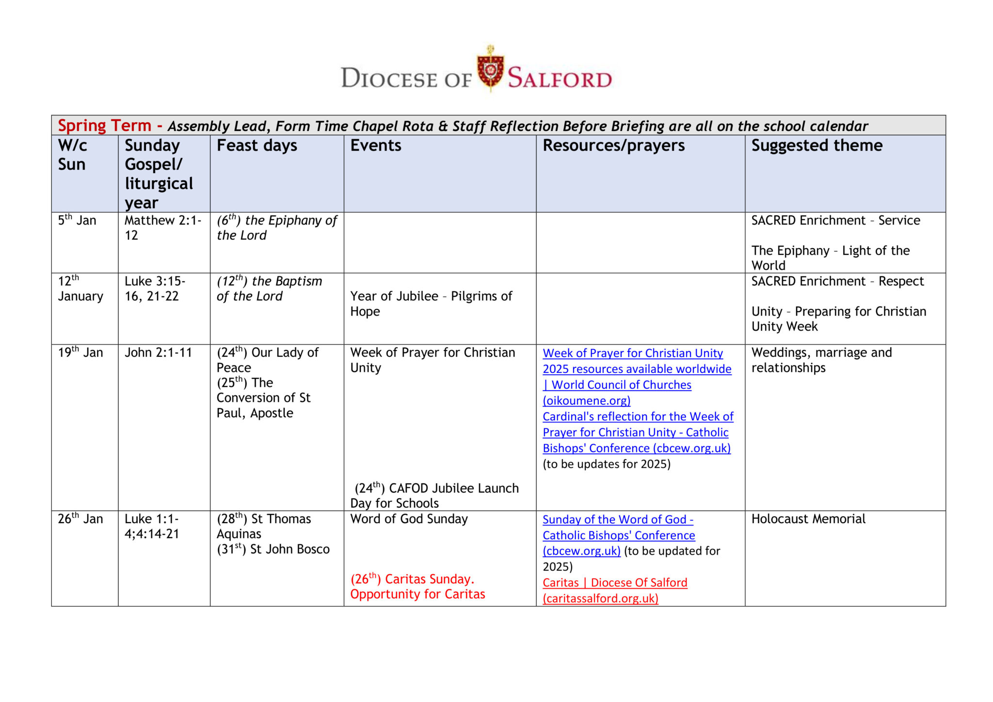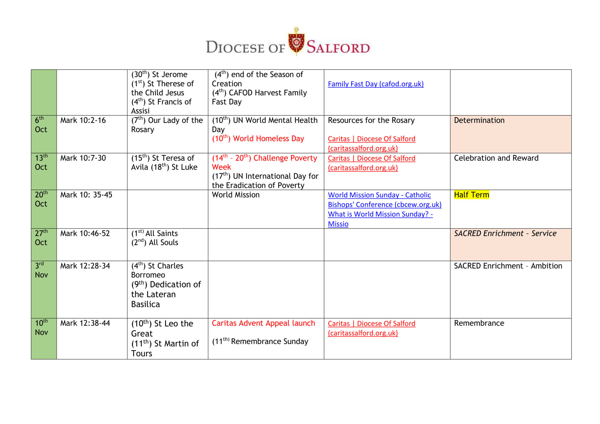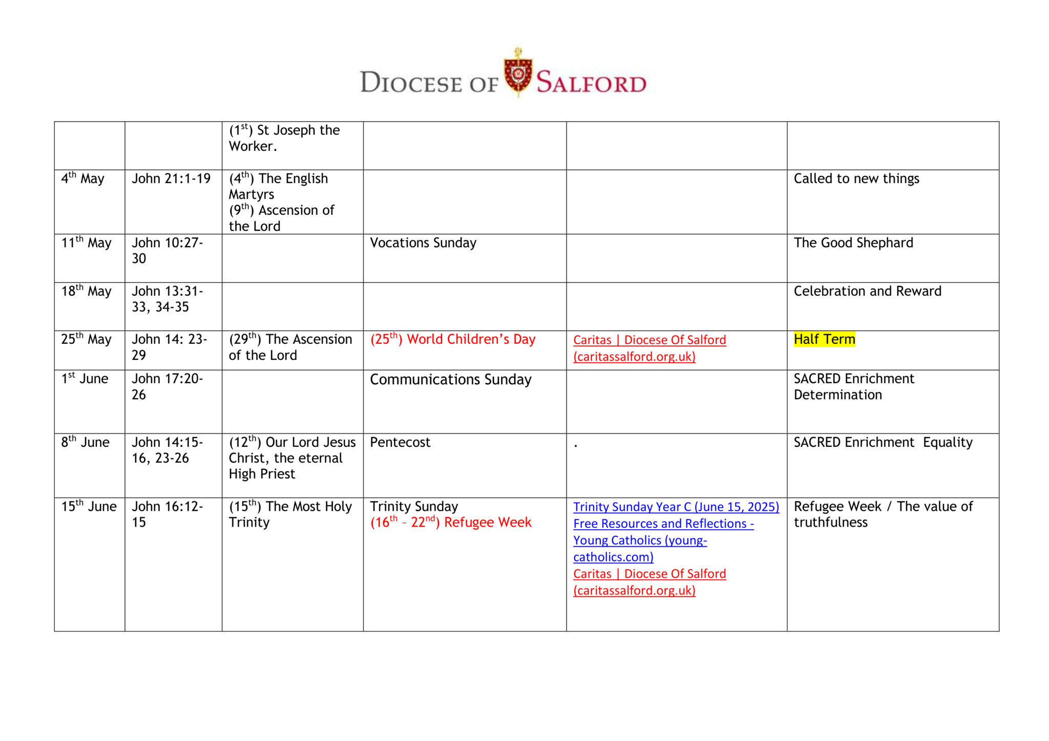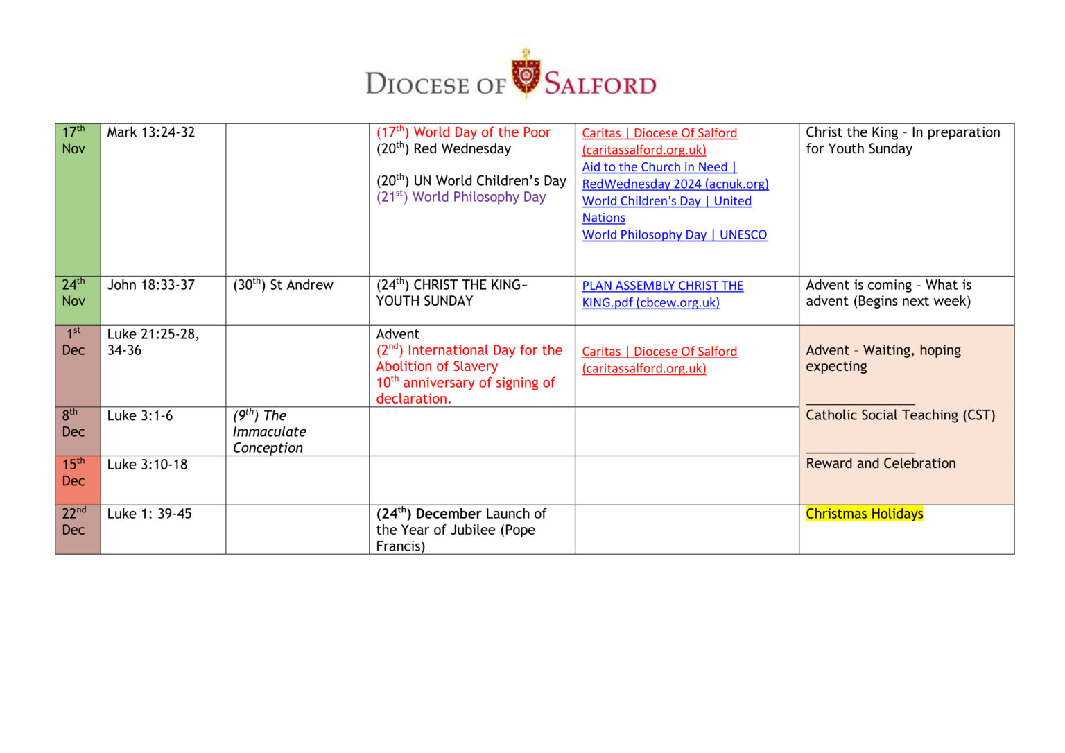 Liturgical Calendar St Anne s RC Voluntary Academy