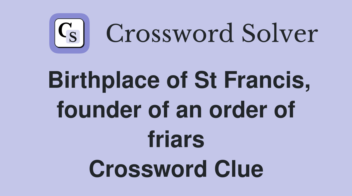 Birthplace of St Francis Crossword Clue Answers Crossword Solver