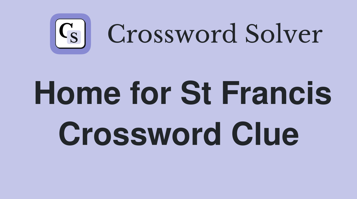 Here are some of the images for St Francis Home Crossword Clue that we found in our website database.