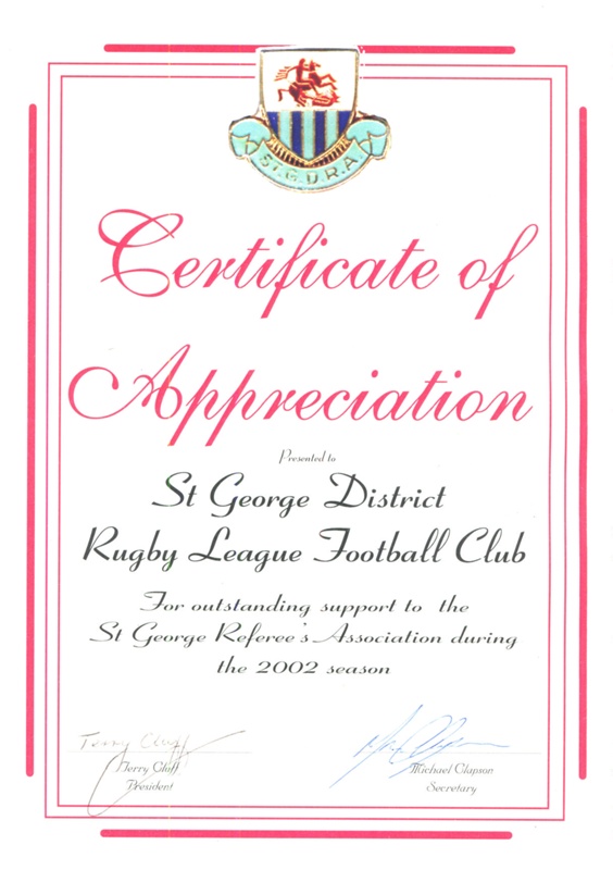 Vale Roy Rocky Miller ST GEORGE DISTRICT RUGBY LEAGUE FOOTBALL CLUB