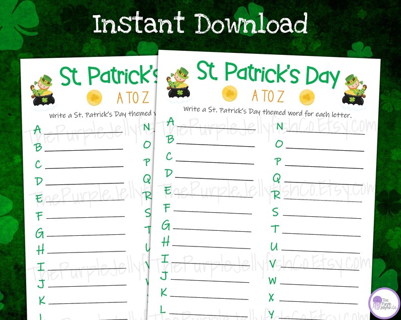A to Z Game St Patricks Day Printable St Patricks Day Game for Kids