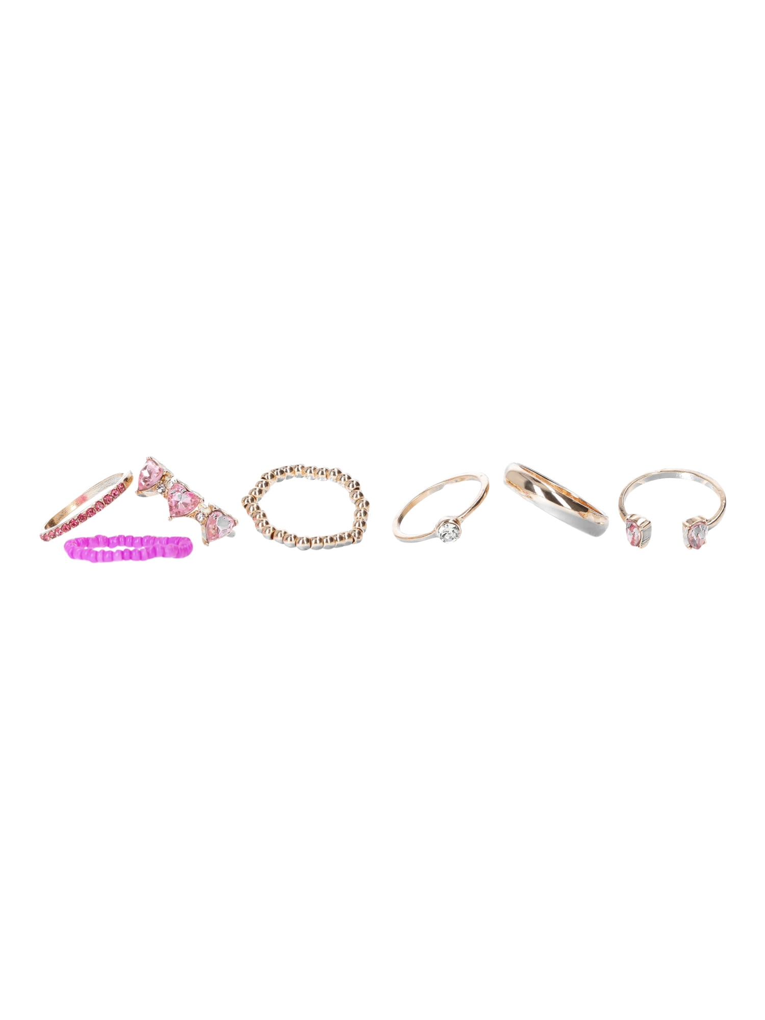 No Boundaries Women s Rhinestone and Heart Stacking Stretch Ring Set 7