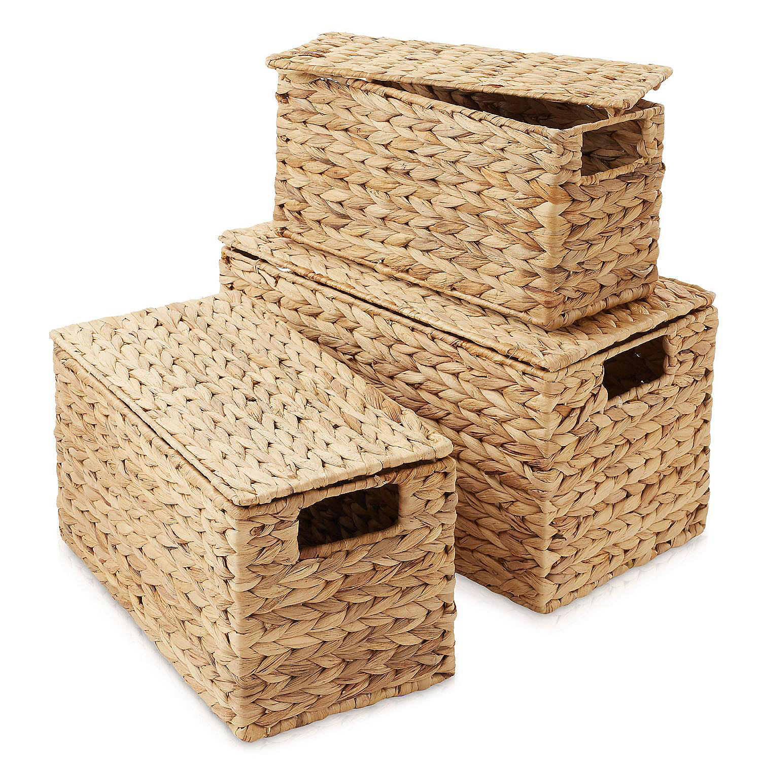 3 Piece Hyacinth Nesting Basket Set Stacking Storage Wicker Bins With