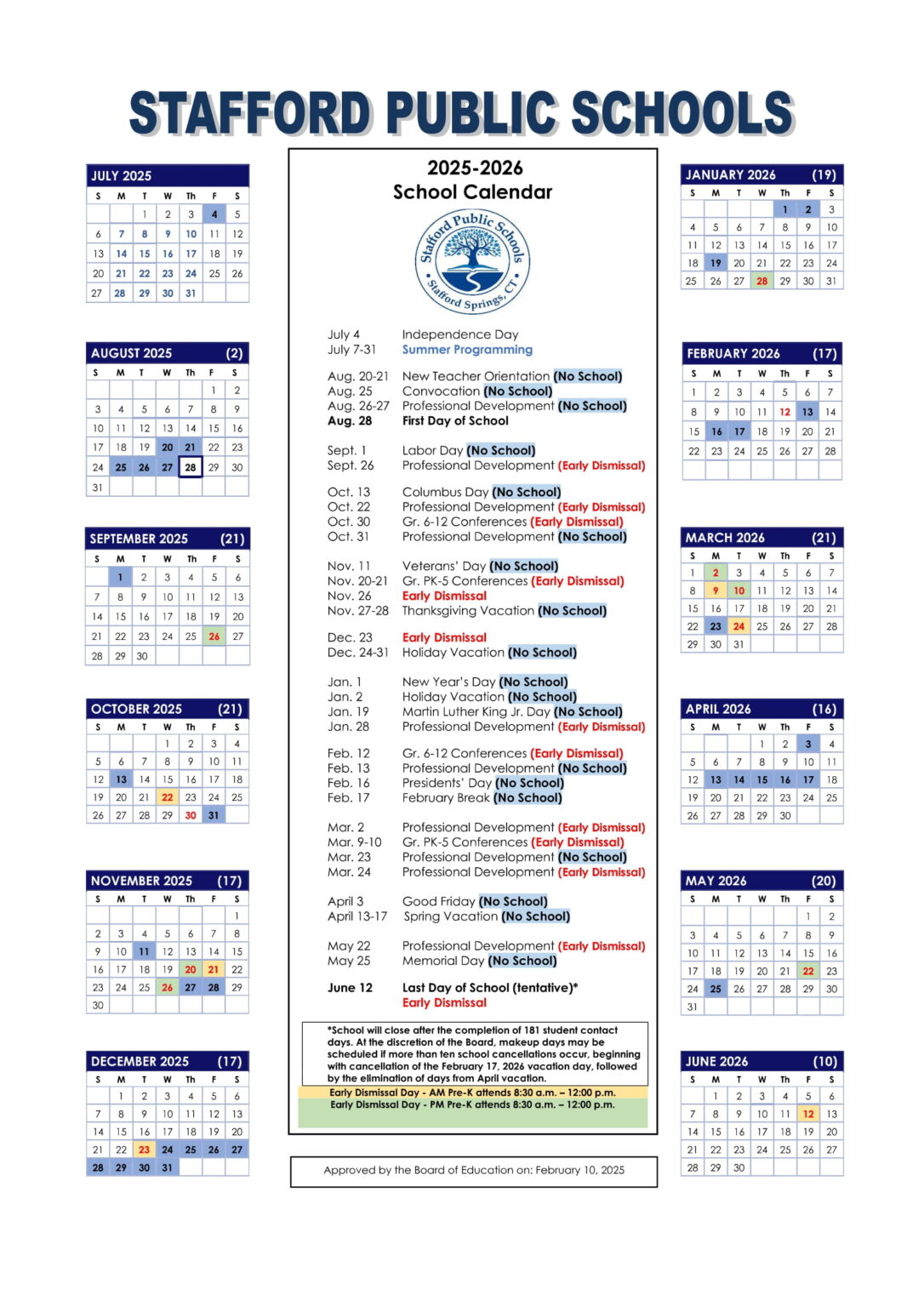 STAFFORD PUBLIC SCHOOLS CT Calendar 25 26 Revised pdf EduCounty