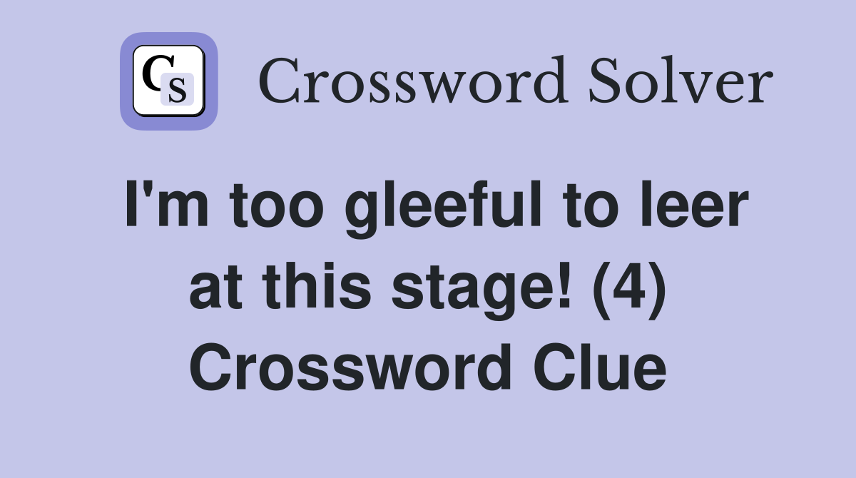 I m too gleeful to leer at this stage (4) Crossword Clue Answers