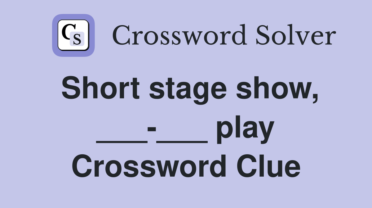 Short stage show play Crossword Clue Answers Crossword Solver