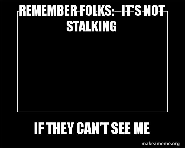 Remember folks: It #39 s not stalking If they can #39 t see me Motivational