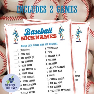 Baseball Game Baseball Nickname Quiz Includes 2 Games Baseball