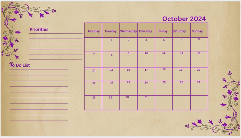 2024 Calendar With Monthly View and to Do List With Priorities Can Be
