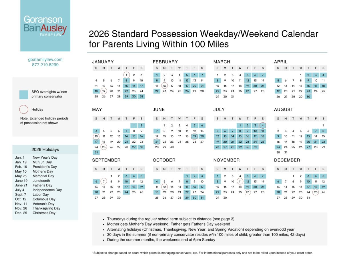 2026 Texas Standard Possession Calendar: Child Custody Guide