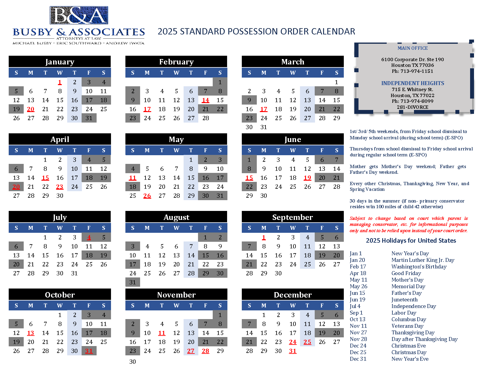 2025 Texas Standard Possession Order Houston Divorce Lawyer Michael Busby