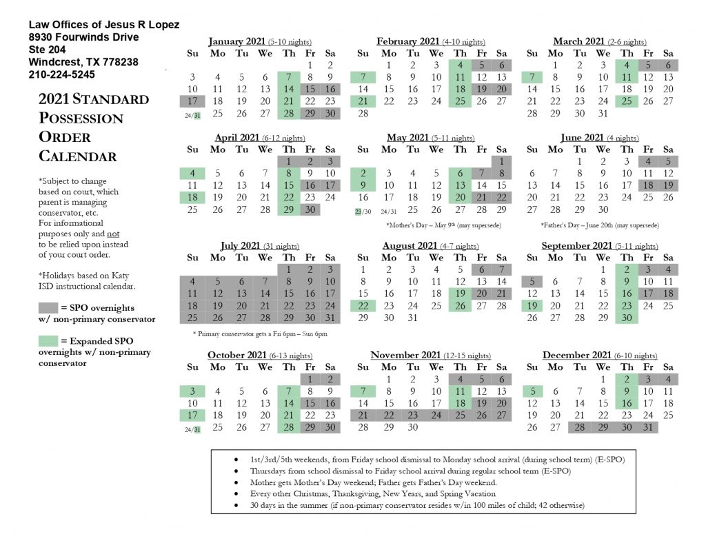 Texas Standard Possession Order Calendar February 2021 Law Office