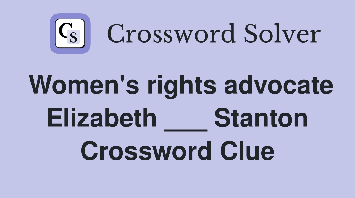 Women #39 s rights advocate Elizabeth Stanton Crossword Clue Answers