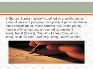 Structure of Poetry and Different Types of Stanza PPTX