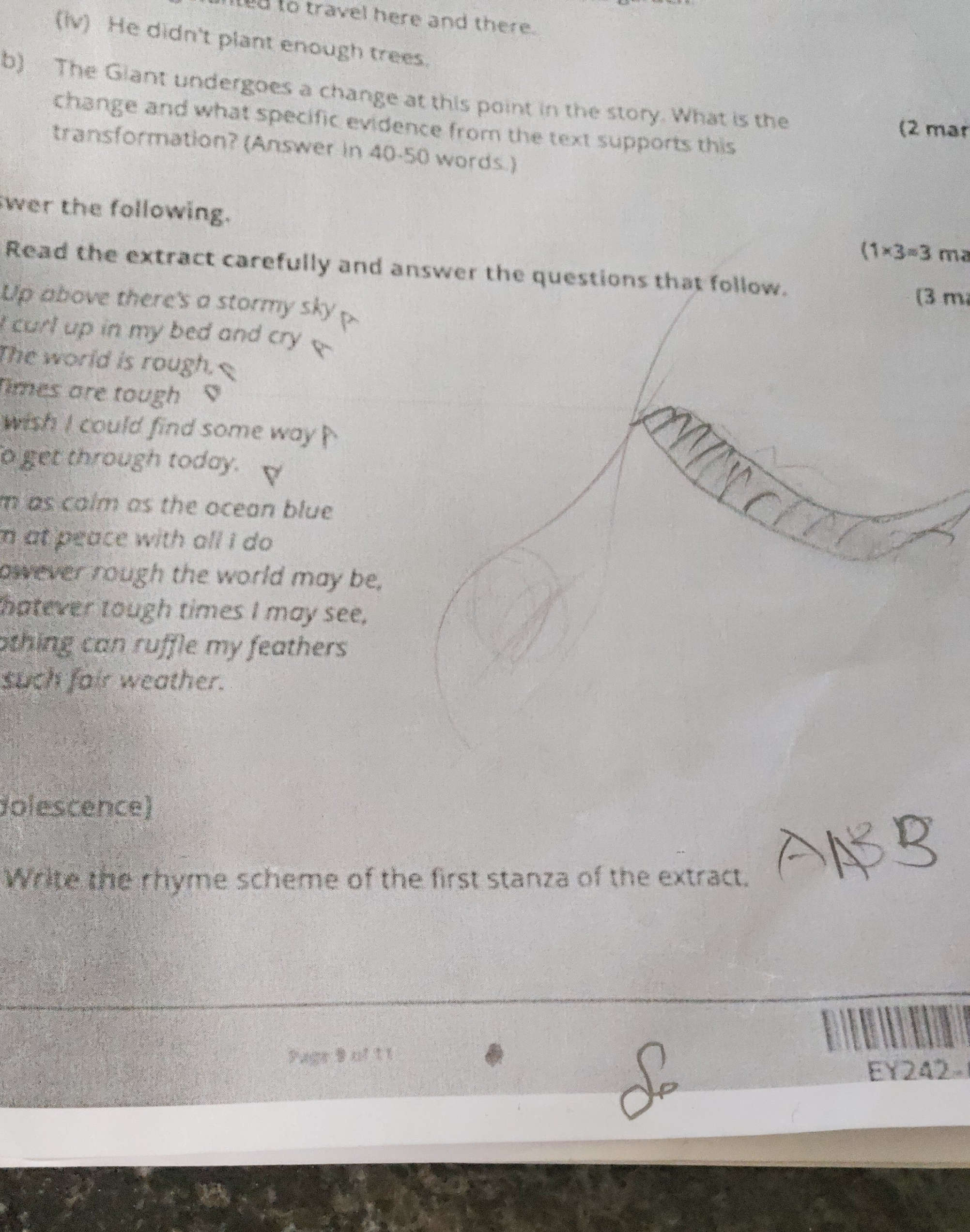 Write the rhyme scheme of the first stanza StudyX