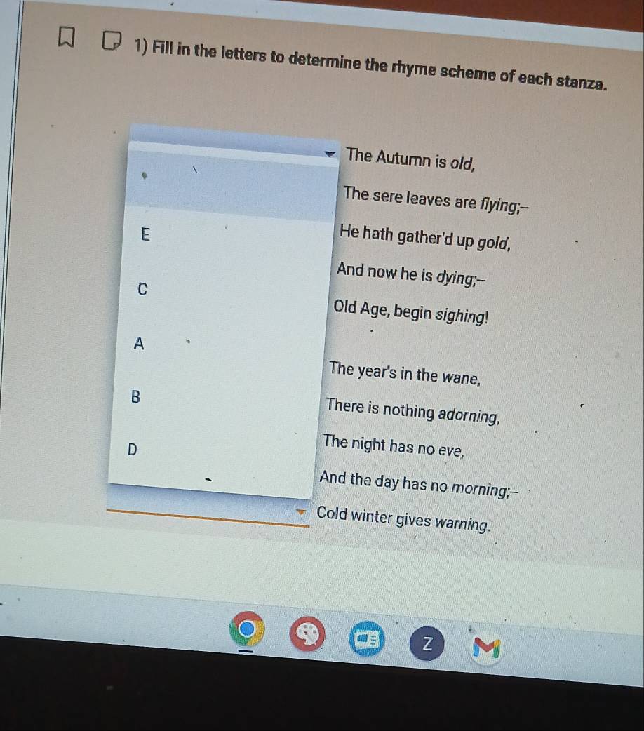 Solved: Fill in the letters to determine the rhyme scheme of each