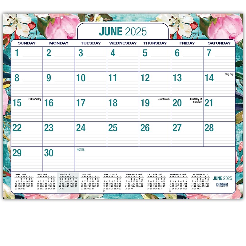 2025 2026 Global Printed Products Teal Floral 22 quot x 17 quot Desk Pad