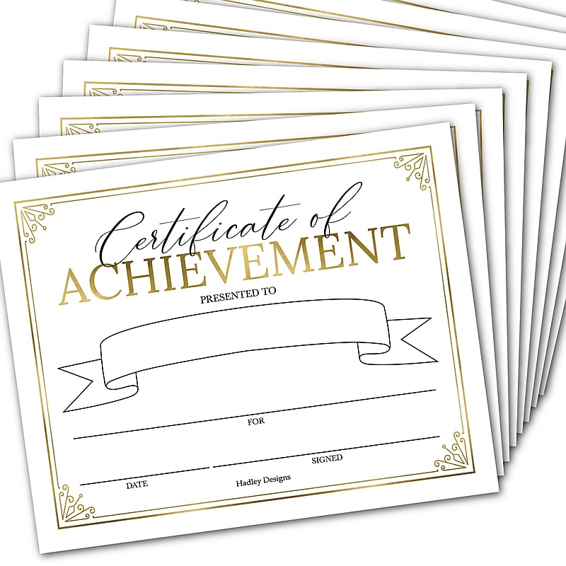Hadley Designs Elegant Gold Award Certificates of Achievement for